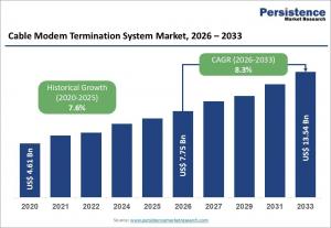 BRENTFORD, ENGLAND, UNITED KINGDOM, March 11, 2026 /EINPresswire.com/ -- The Cable Modem Termination System (CMTS) Market is experiencing steady expansion as global cable operators modernize broadband infrastructure to meet rising data consumption and gigabit-speed connectivity demands. CMTS technology acts as the central hub connecting cable modem subscribers to broadband networks, enabling high-speed internet services across hybrid fiber-coaxial (HFC) infrastructure. The global Cable Modem Termination System market size is expected to grow from US$7.75 billion in 2026 to US$13.54 billion by 2033, registering a CAGR of 8.3% during the forecast period. Increasing demand for multi-gigabit broadband, DOCSIS technology upgrades, and the growing adoption of digital streaming platforms are key factors fueling market growth.